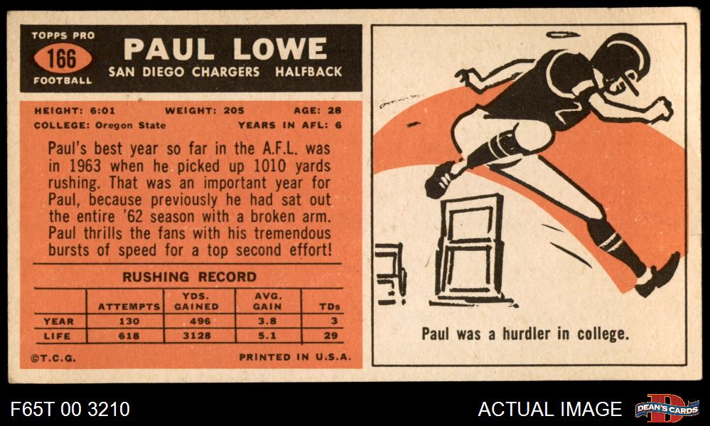 1965 Topps #166 Paul Lowe 2 - GOOD