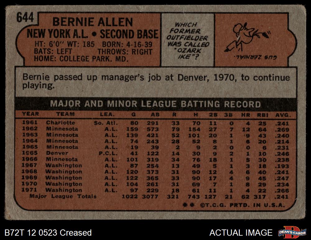 1972 Topps #644 Bernie Allen Front Thumbnail