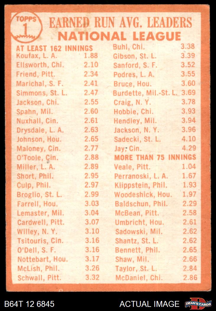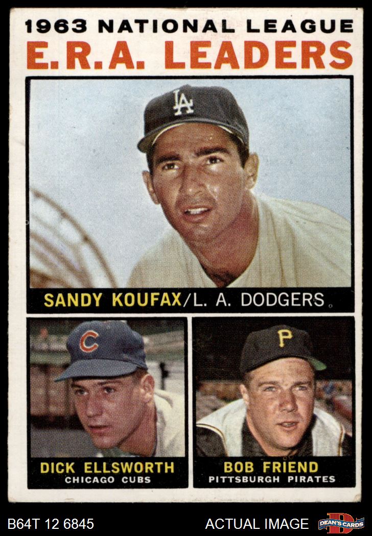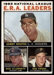 1964 Topps #1 - Sandy Koufax / Bob Friend / Dick Ellsworth NL ERA Leaders 3 - VG