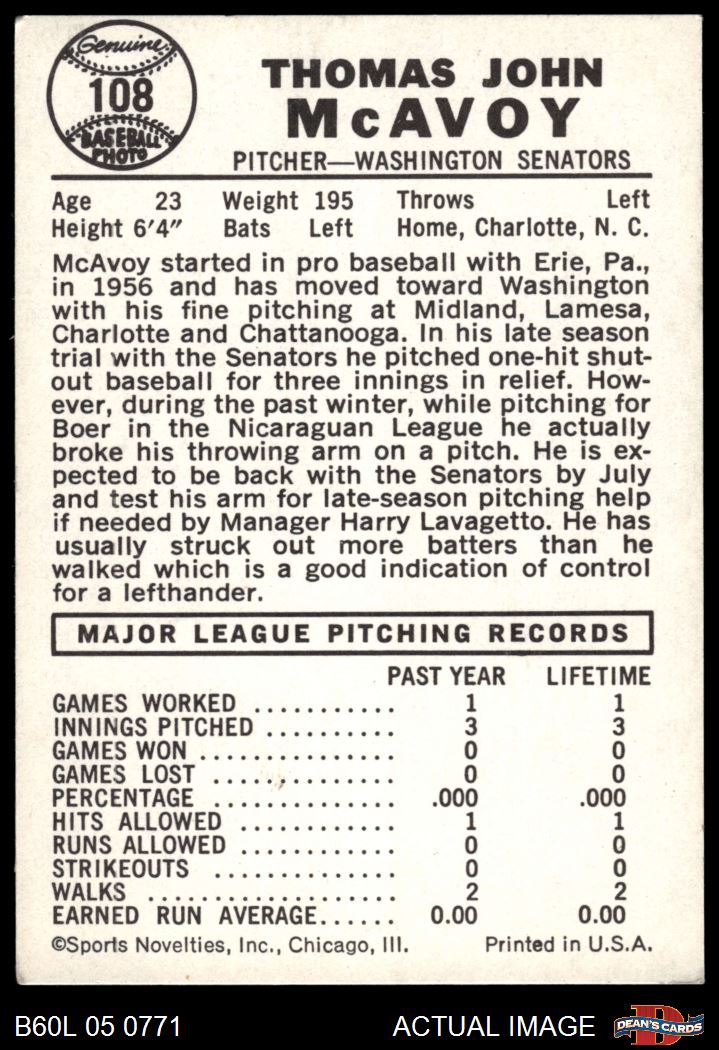 1960 Leaf #108 Tom McAvoy 2 - GOOD