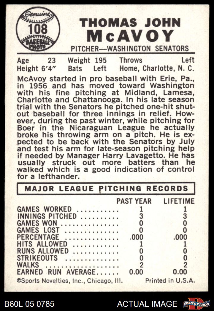 1960 Leaf #108 Tom McAvoy 3 - VG
