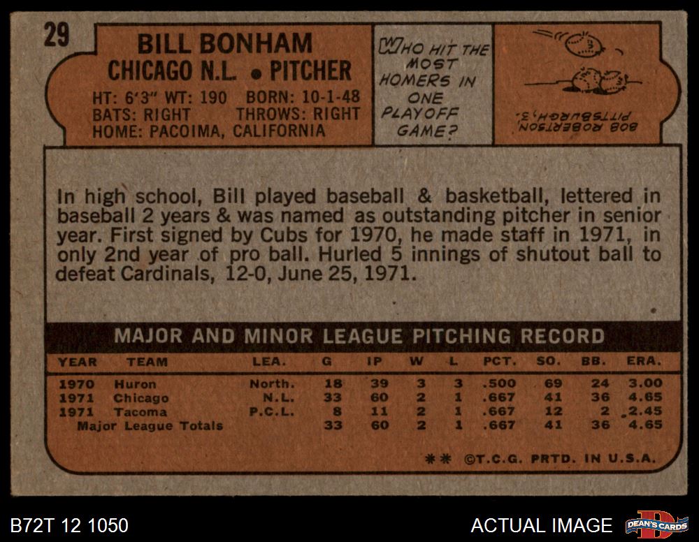 1972 Topps #29 GRN Bill Bonham 2 - GOOD