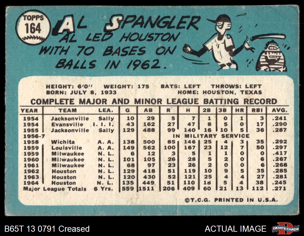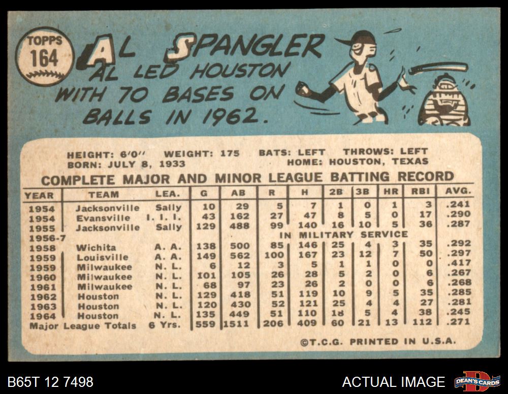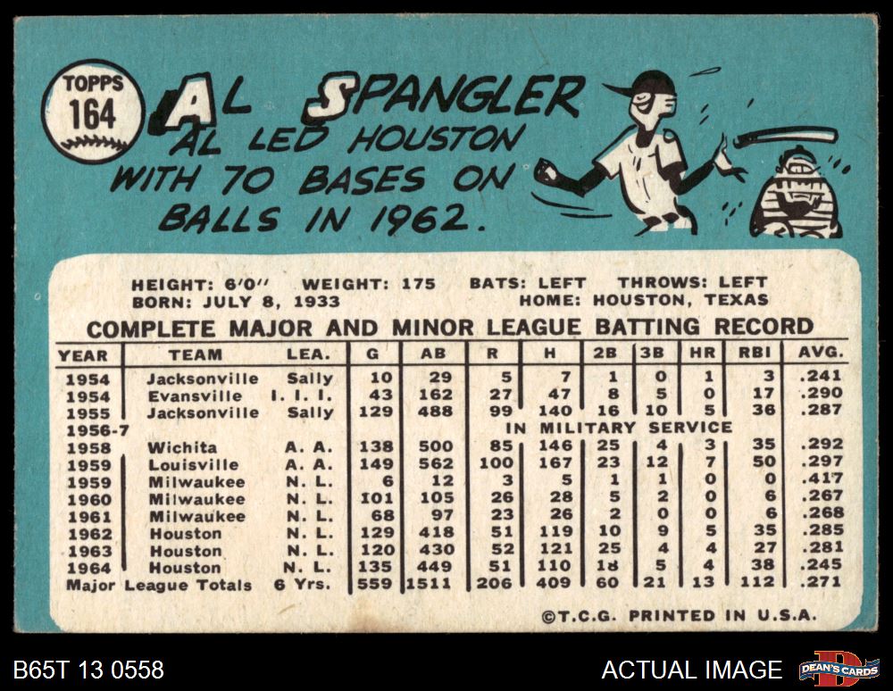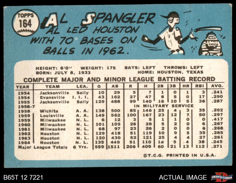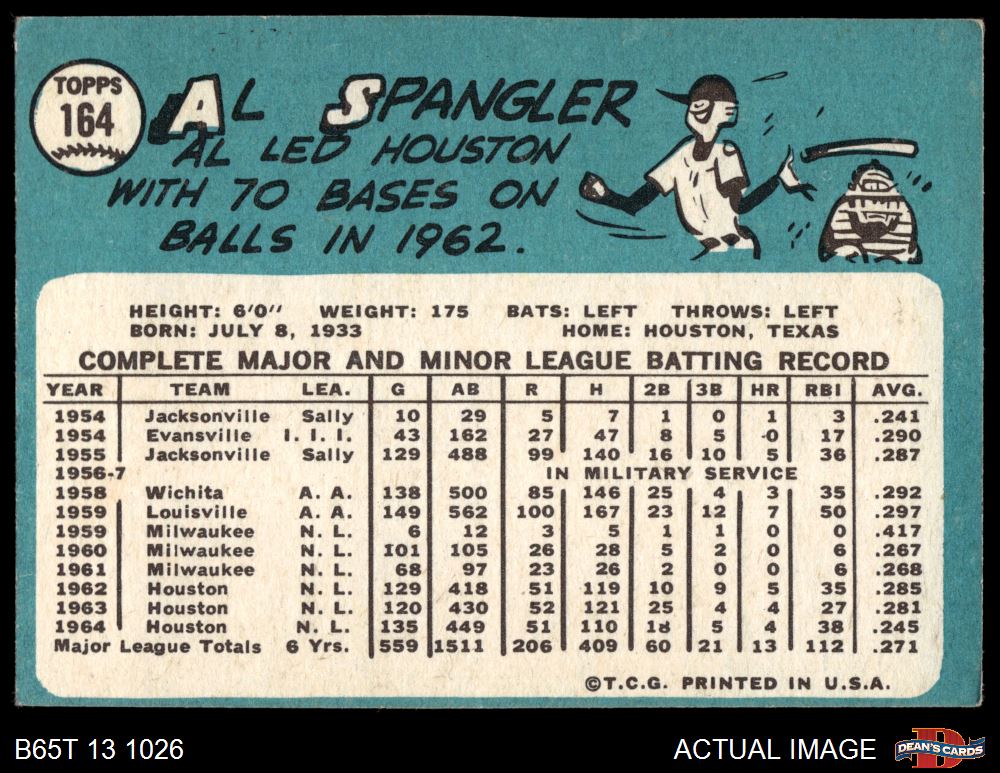 1965 Topps #164 Al Spangler 2 - GOOD