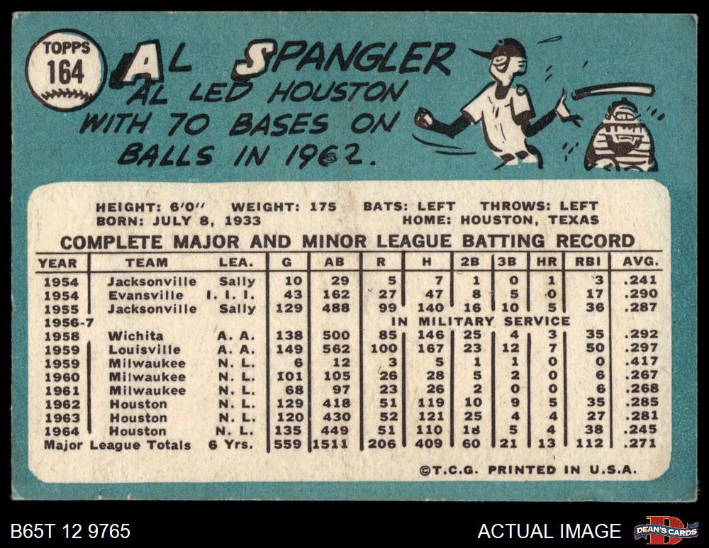 1965 Topps #164 Al Spangler 3 - VG