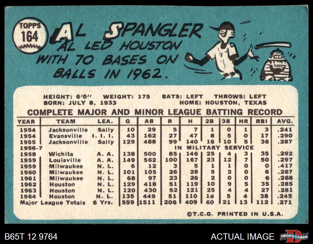1965 Topps #164 Al Spangler 4 - VG/EX