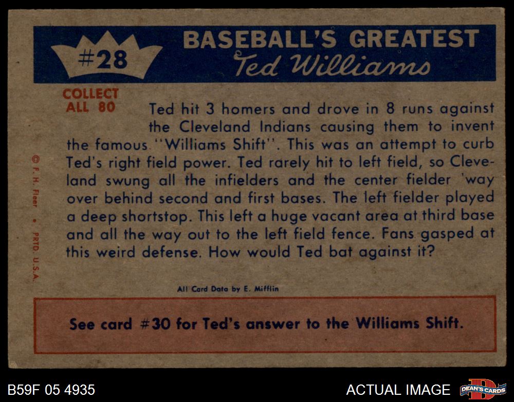 1959 Fleer #28 - Ted Williams The Williams Shift 6 - EX/MT