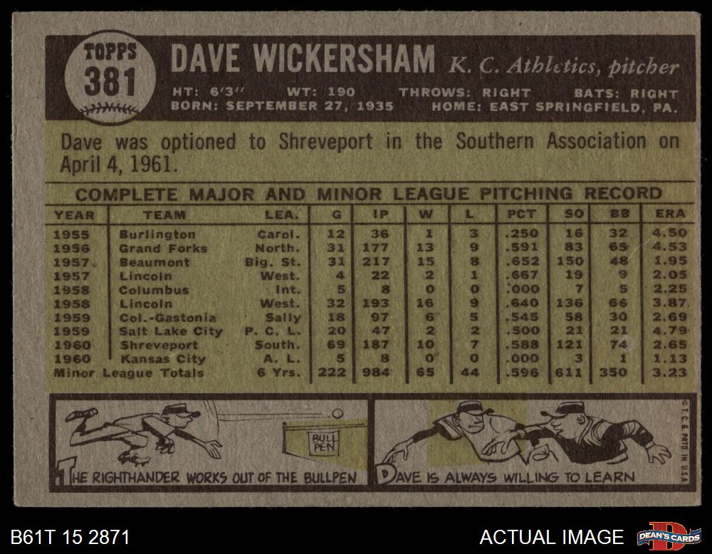 1961 Topps #381 Dave Wickersham 2 - GOOD