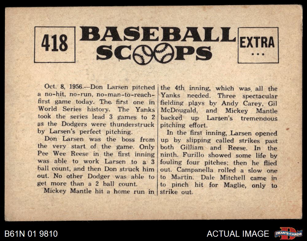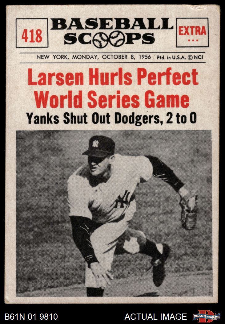 1961 Nu-Card Scoops #418 - Don Larsen Hurls Perfect World Series Game 3 - VG