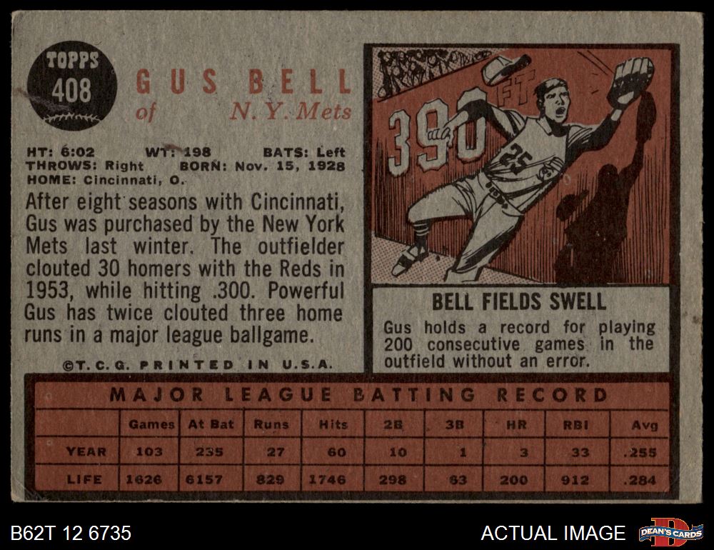 1962 Topps #408 Gus Bell