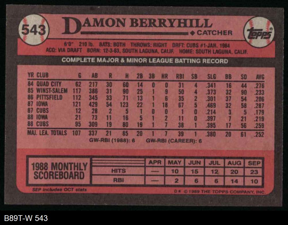 1989 Topps #543 Damon Berryhill
