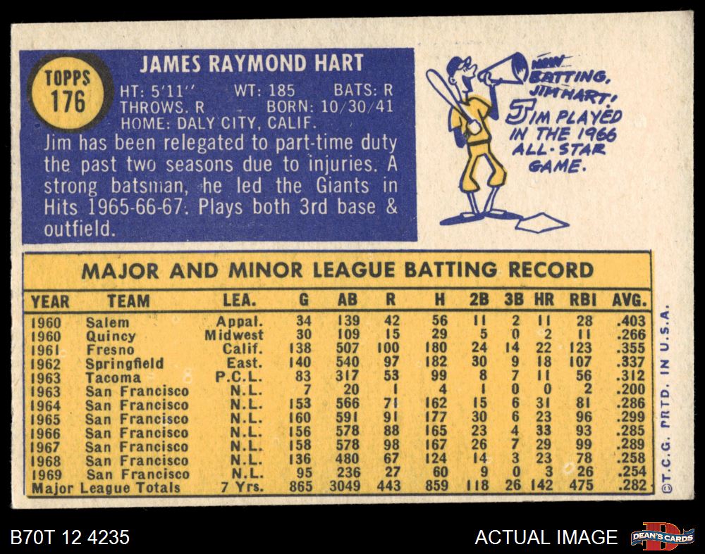 1970 Topps #176 Jim Hart 5 - EX