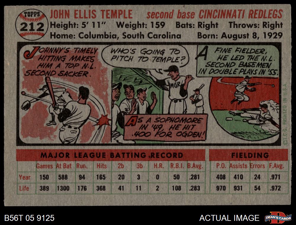 1956 Topps #212 Johnny Temple 6 - EX/MT