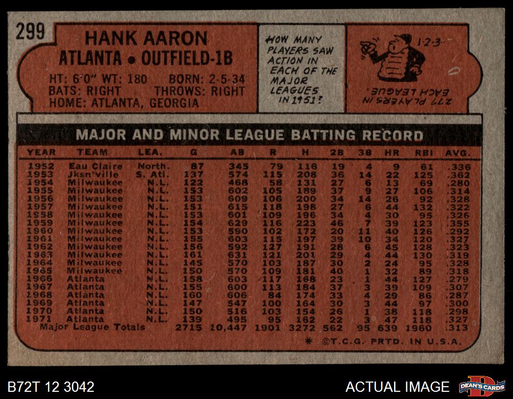 1972 Topps #299 Hank Aaron AUTHENTIC