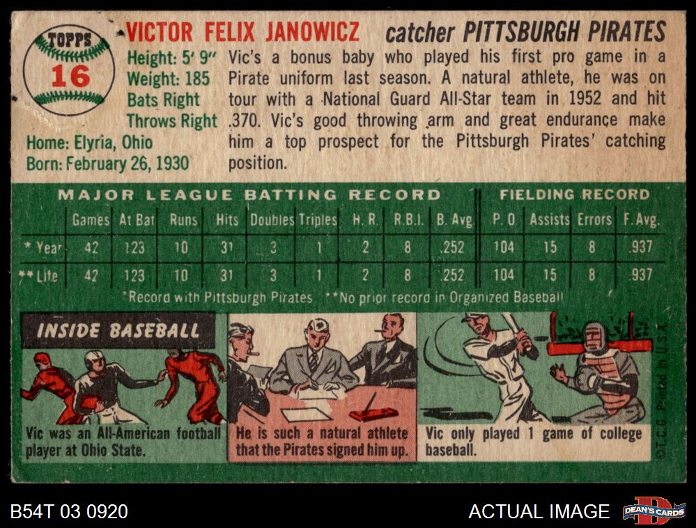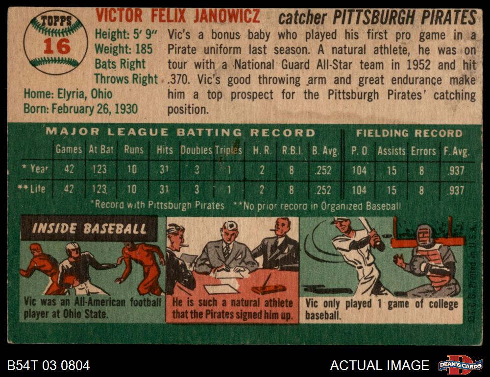1954 Topps #16 WHT Vic Janowicz 4 - VG/EX