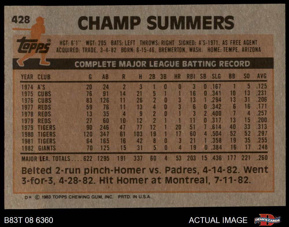 1983 Topps #428 Champ Summers 8 - NM/MT