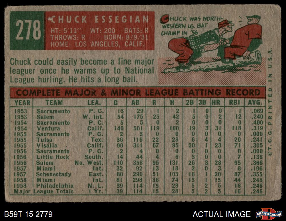 1959 Topps #278 Chuck Essegian 1 - POOR