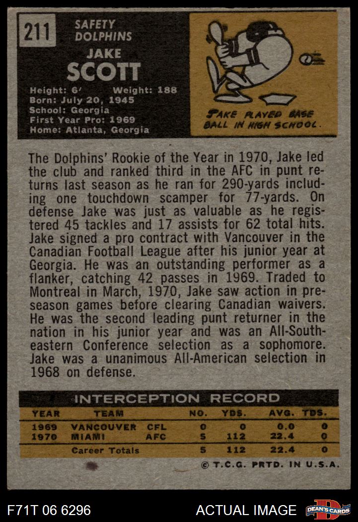 1971 Topps #211 Jake Scott