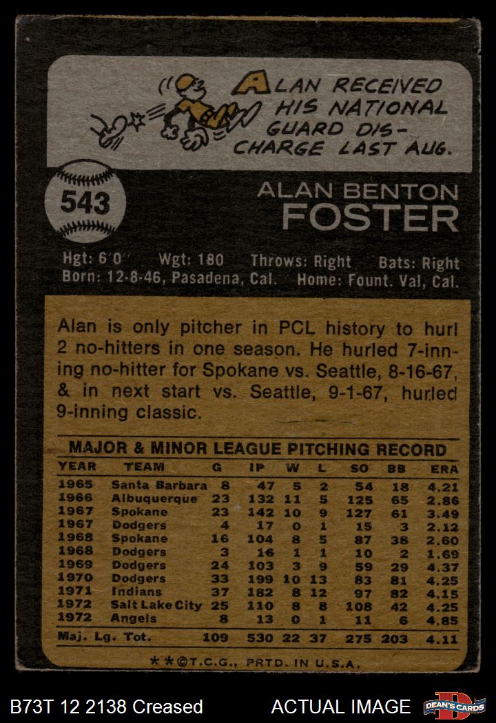 1973 Topps #543 Alan Foster 2 - GOOD