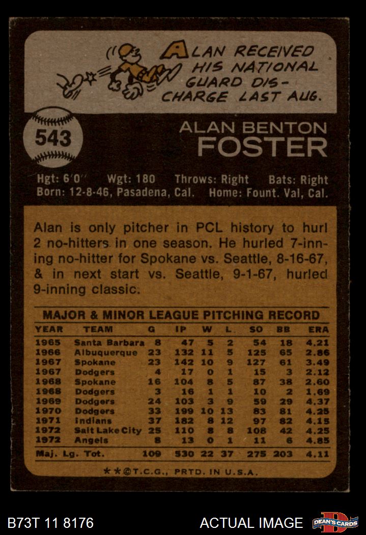 1973 Topps #543 Alan Foster 5 - EX