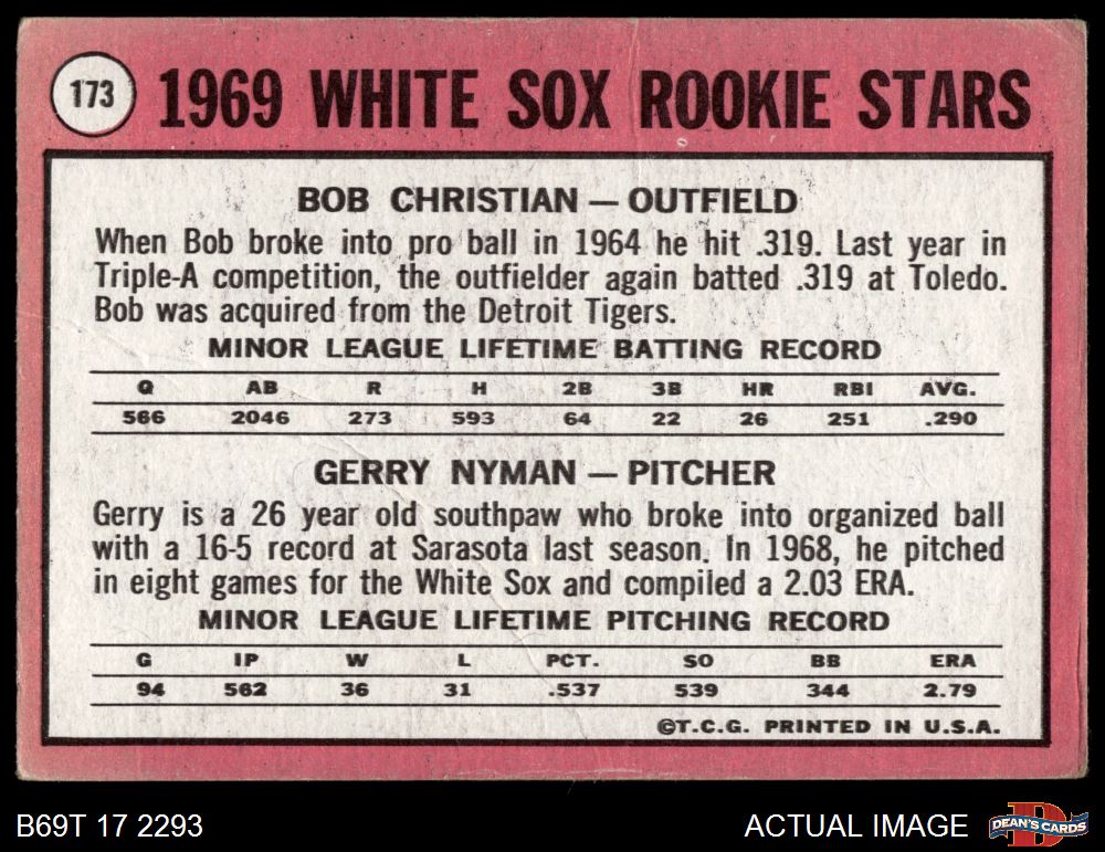 1969 Topps #173 - Bob Christian / Gerry Nyman White Sox Rookies 1.5 - FAIR
