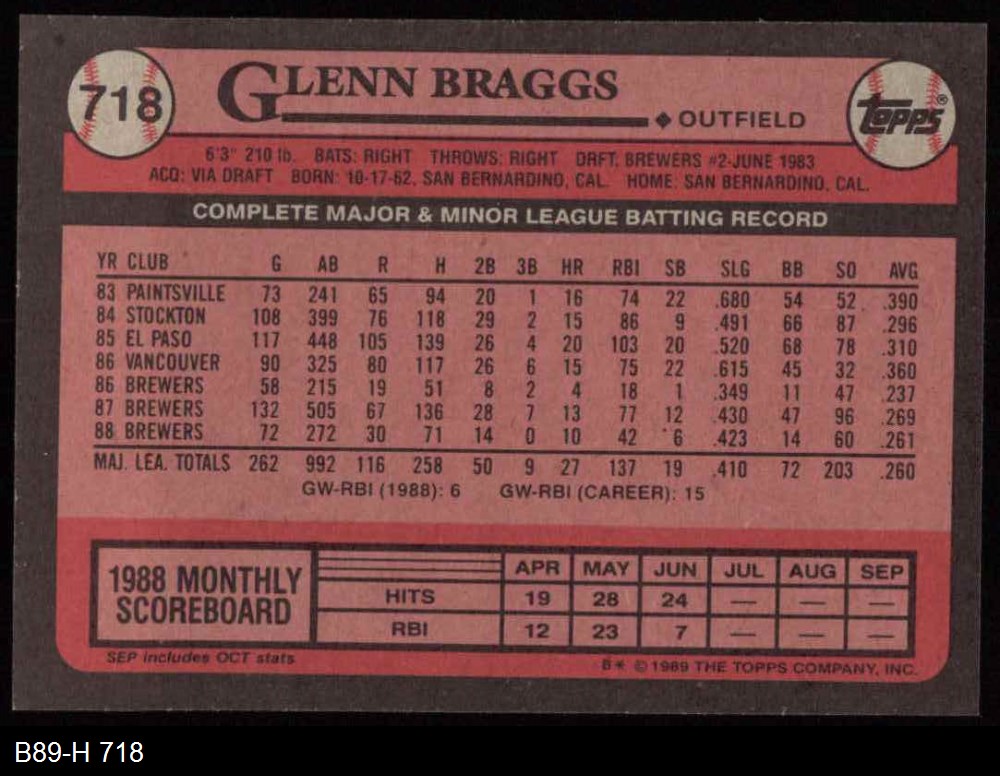 1989 Topps #718 Glenn Braggs 8 - NM/MT