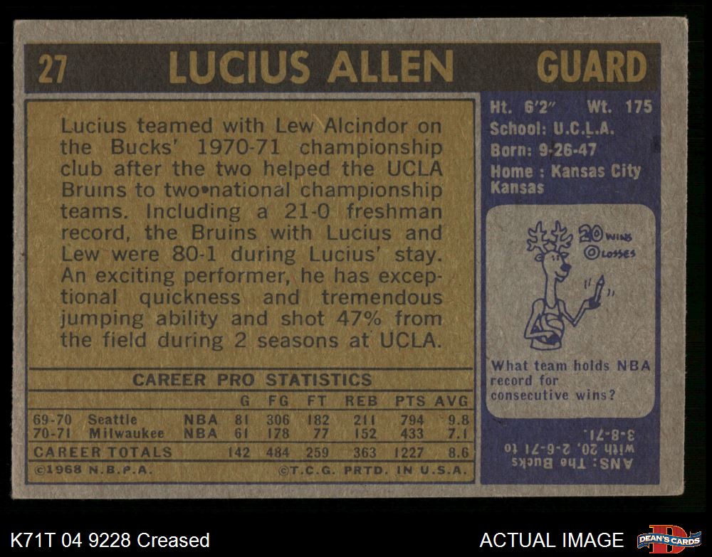 1971 Topps #27 Lucius Allen 2.5 - GD+