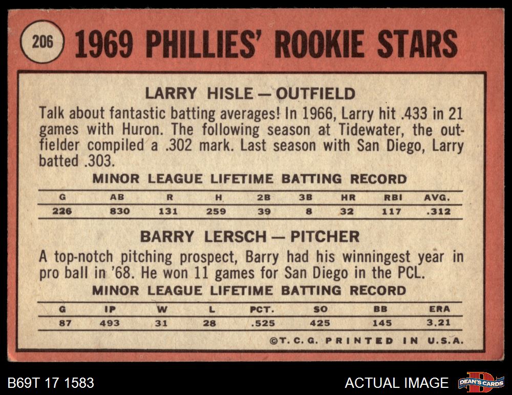 1969 Topps #206 - Larry Hisle / Barry Lersch Phillies Rookies 3 - VG