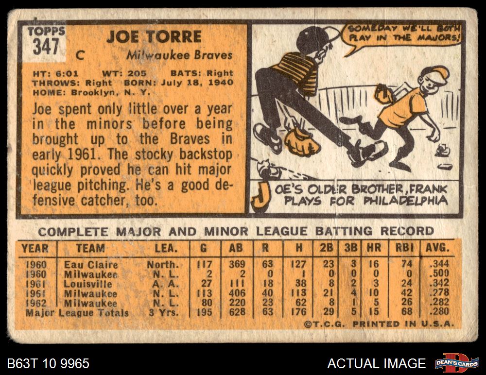 1963 Topps #347 Joe Torre 1 - POOR