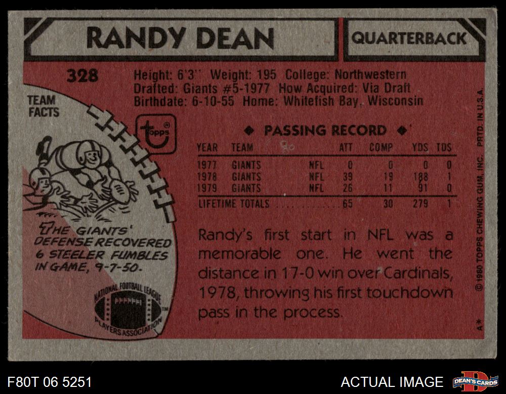 1980 Topps #328 Randy Dean 3 - VG