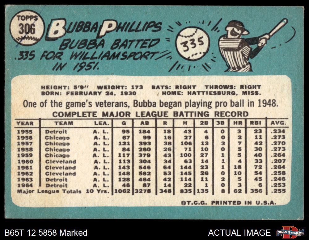 1965 Topps #306 Bubba Phillips 1.5 - FAIR