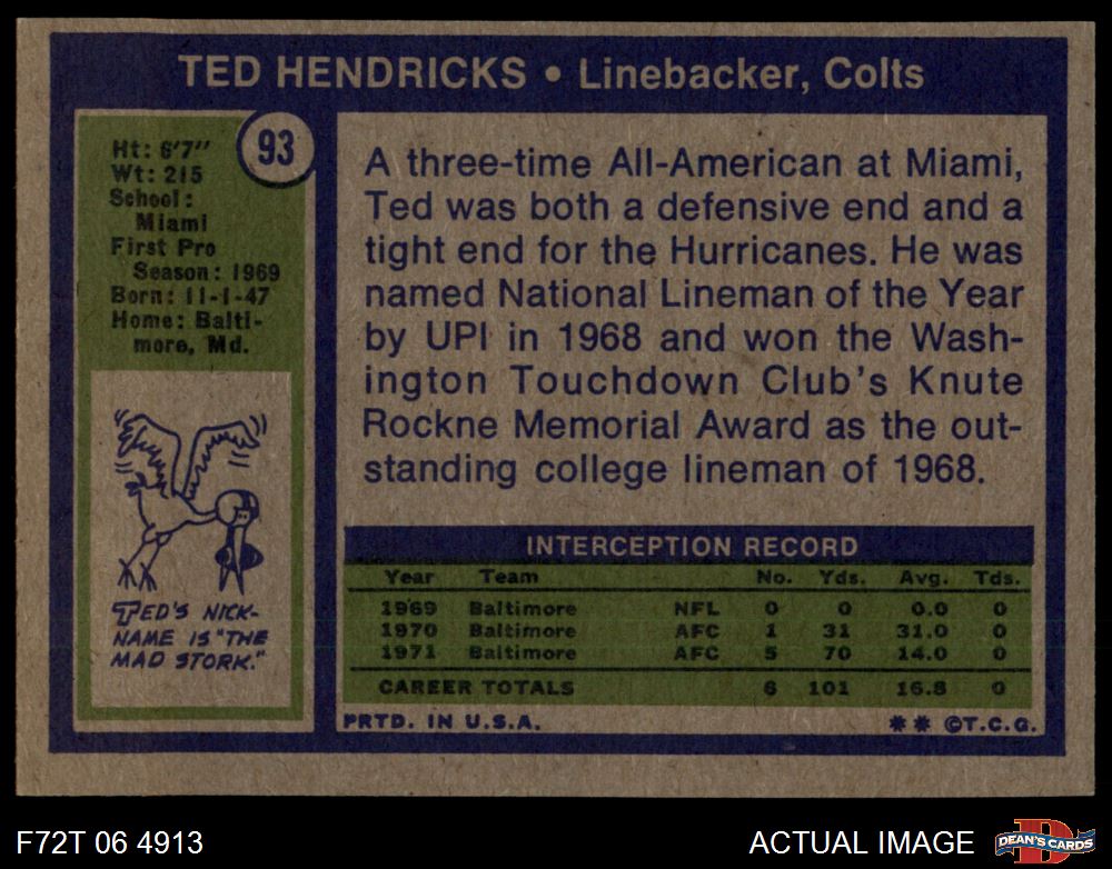 1972 Topps #93 Ted Hendricks 5 - EX