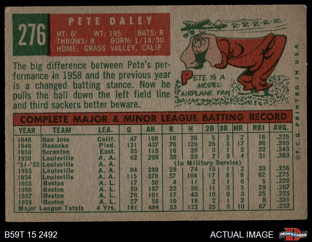 1959 Topps #276 Pete Daley 2 - GOOD