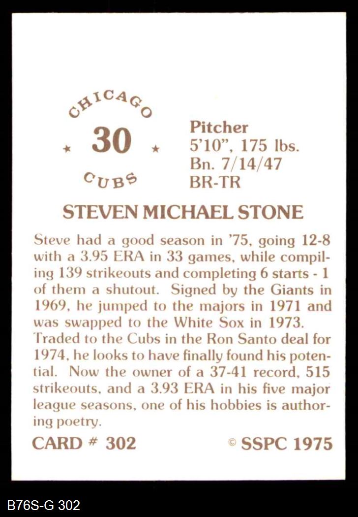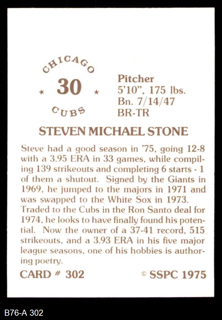 1975 SSPC #302 Steve Stone 8 - NM/MT