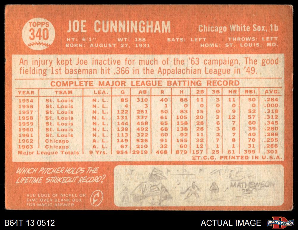 1964 Topps #340 Joe Cunningham 2.5 - GD+