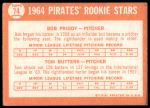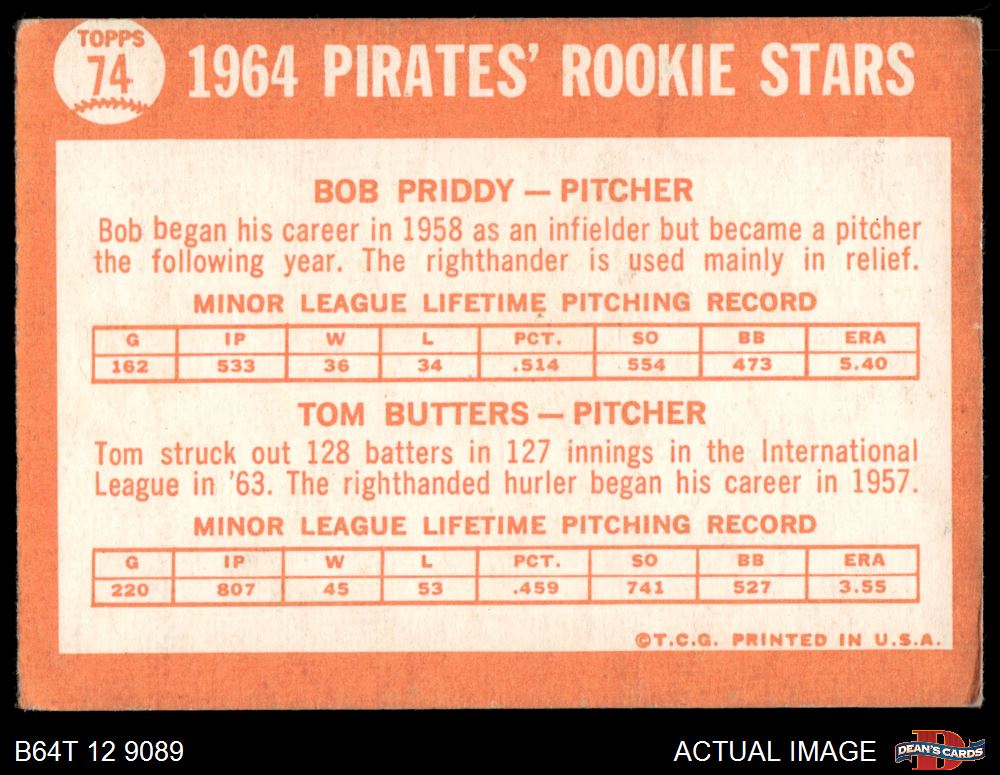 1964 Topps #74 - Bob Priddy / Tom Butters Pirates Rookies 1 - POOR