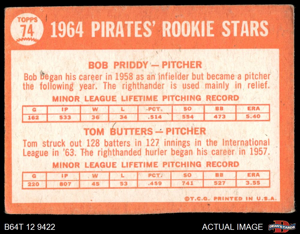 1964 Topps #74 - Bob Priddy / Tom Butters Pirates Rookies 1.5 - FAIR