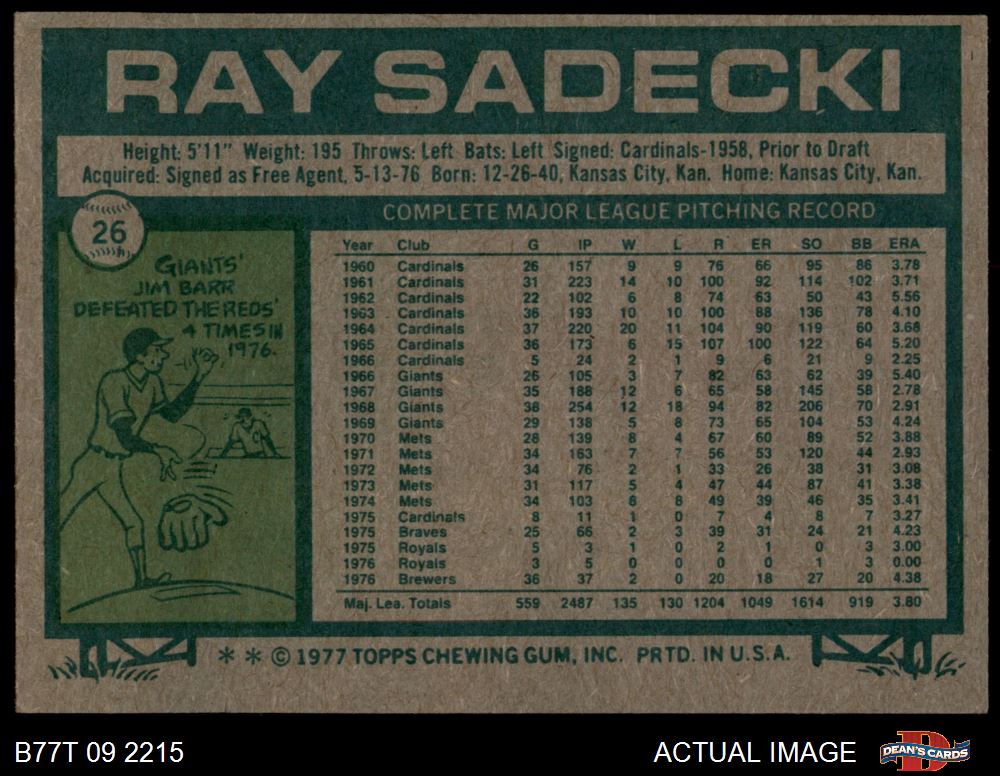 1977 Topps #26 Ray Sadecki 4 - VG/EX