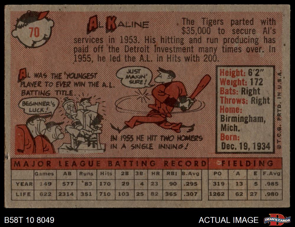 1958 Topps #70 WN Al Kaline 4.5 - VG/EX+