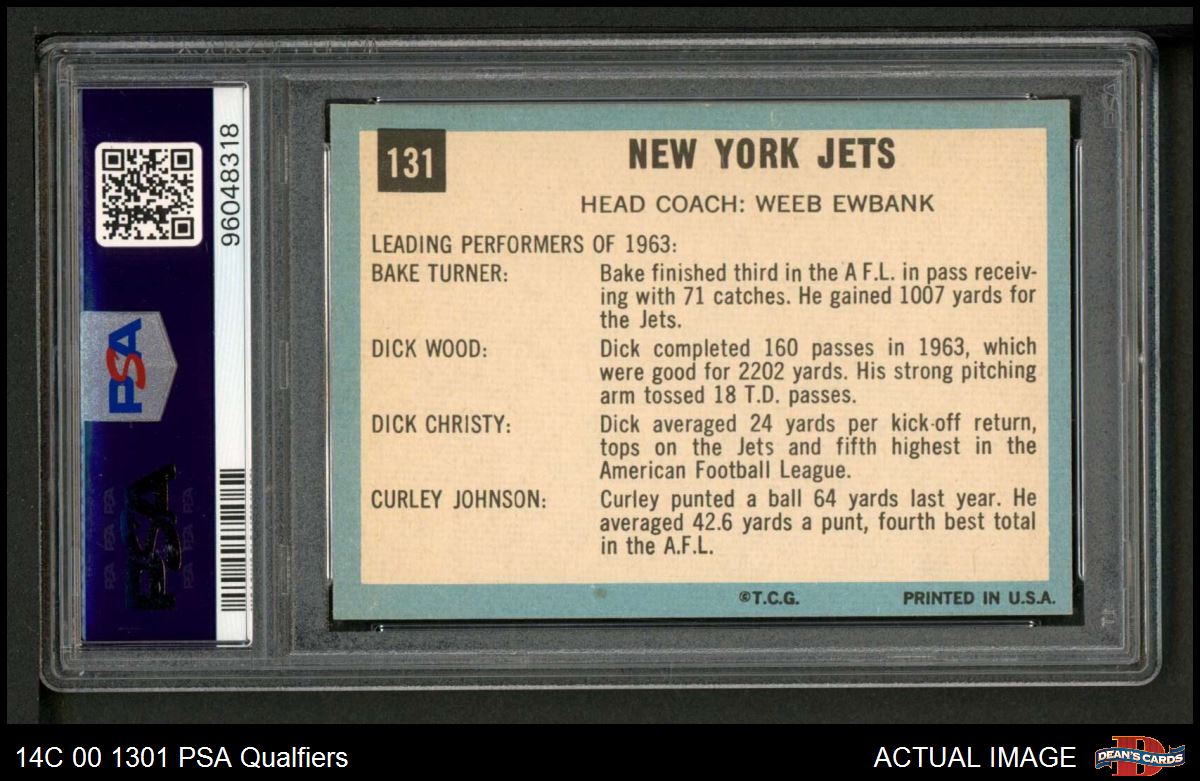 1964 Topps #131 New York Jets Team PSA 8 - NM/MT