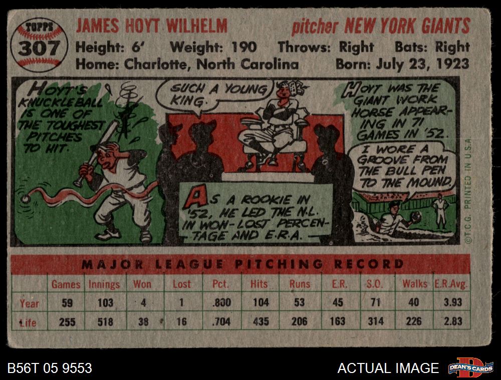 1956 Topps #307 Hoyt Wilhelm 2 - GOOD