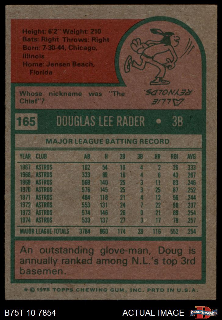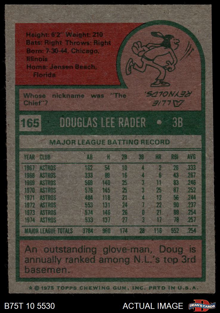 1975 Topps #165 Doug Rader 6 - EX/MT