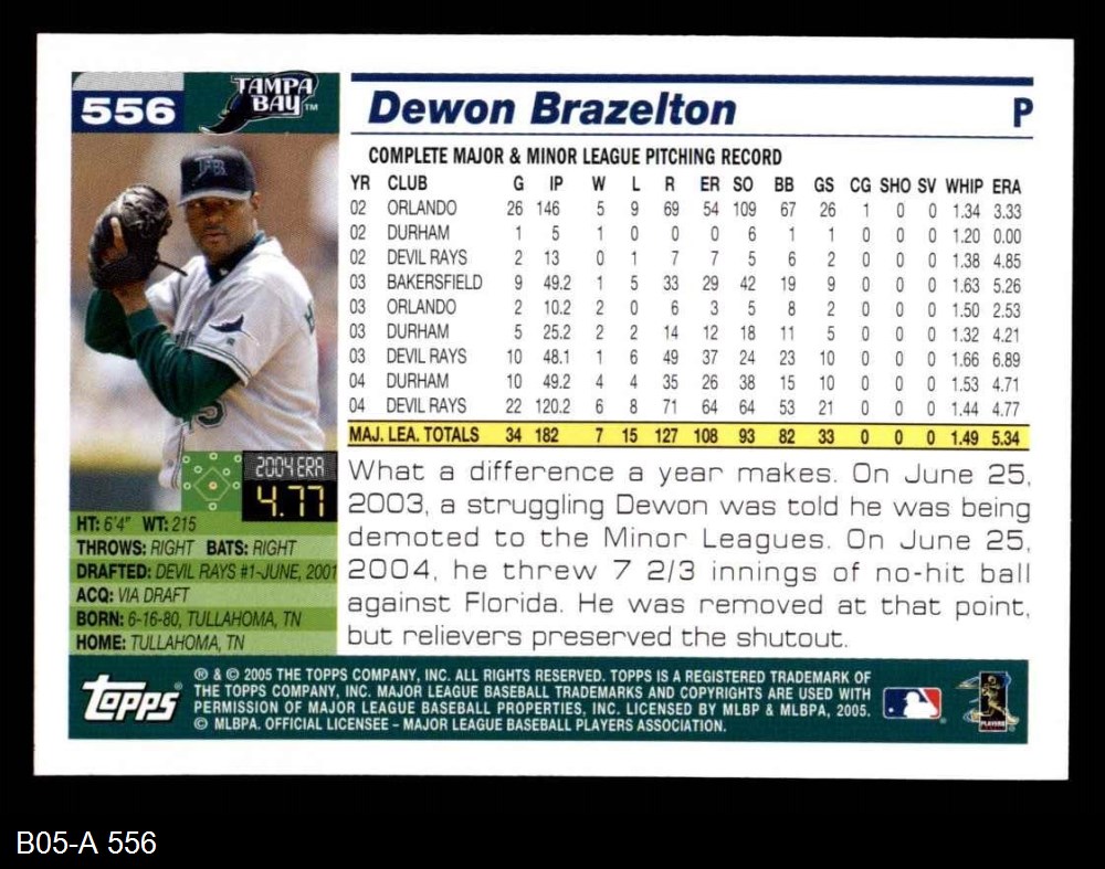 2005 Topps #556 Dewon Brazelton 8 - NM/MT