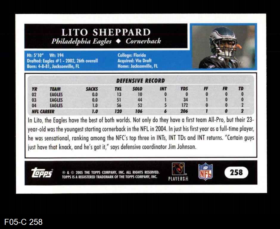 2005 Topps #258 Lito Sheppard 8 - NM/MT