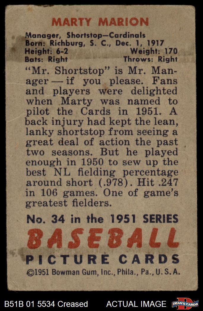1951 Bowman #34 Marty Marion 2 - GOOD