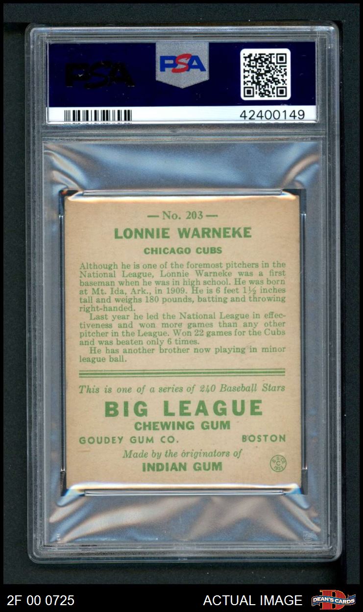 1933 Goudey #203 Lonnie Warneke PSA 5 - EX