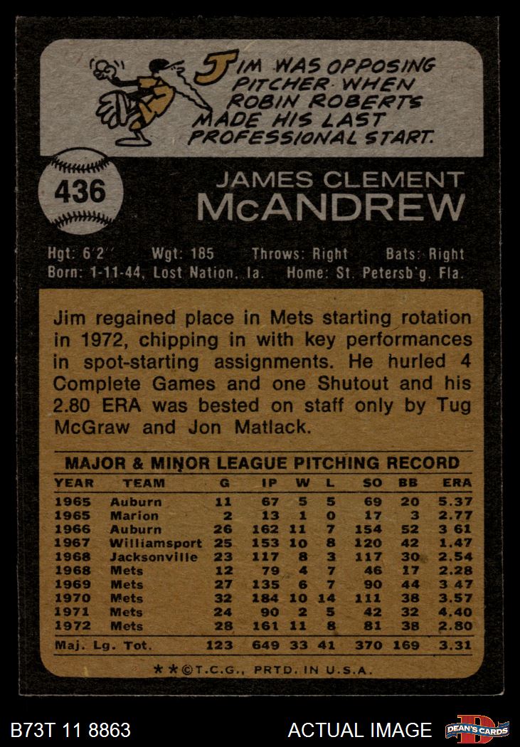 1973 Topps #436 Jim McAndrew 7 - NM