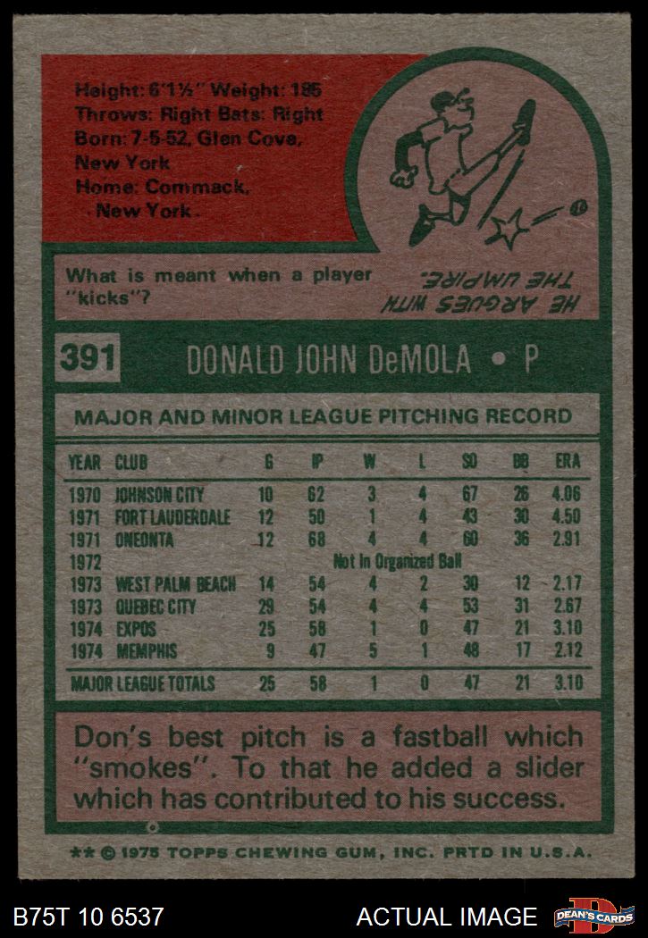 1975 Topps #391 Don DeMola 4 - VG/EX