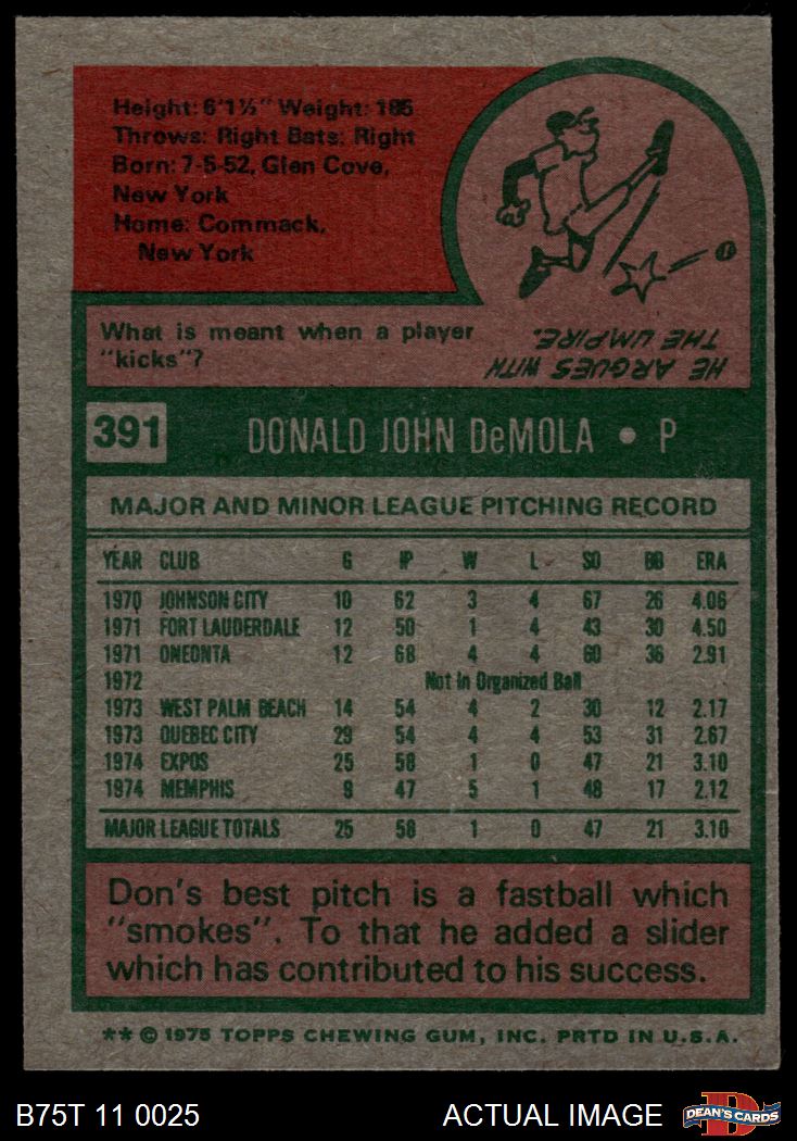 1975 Topps #391 Don DeMola 6 - EX/MT