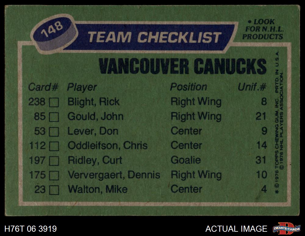 1976 Topps #148 Canucks Team 2.5 - GD+