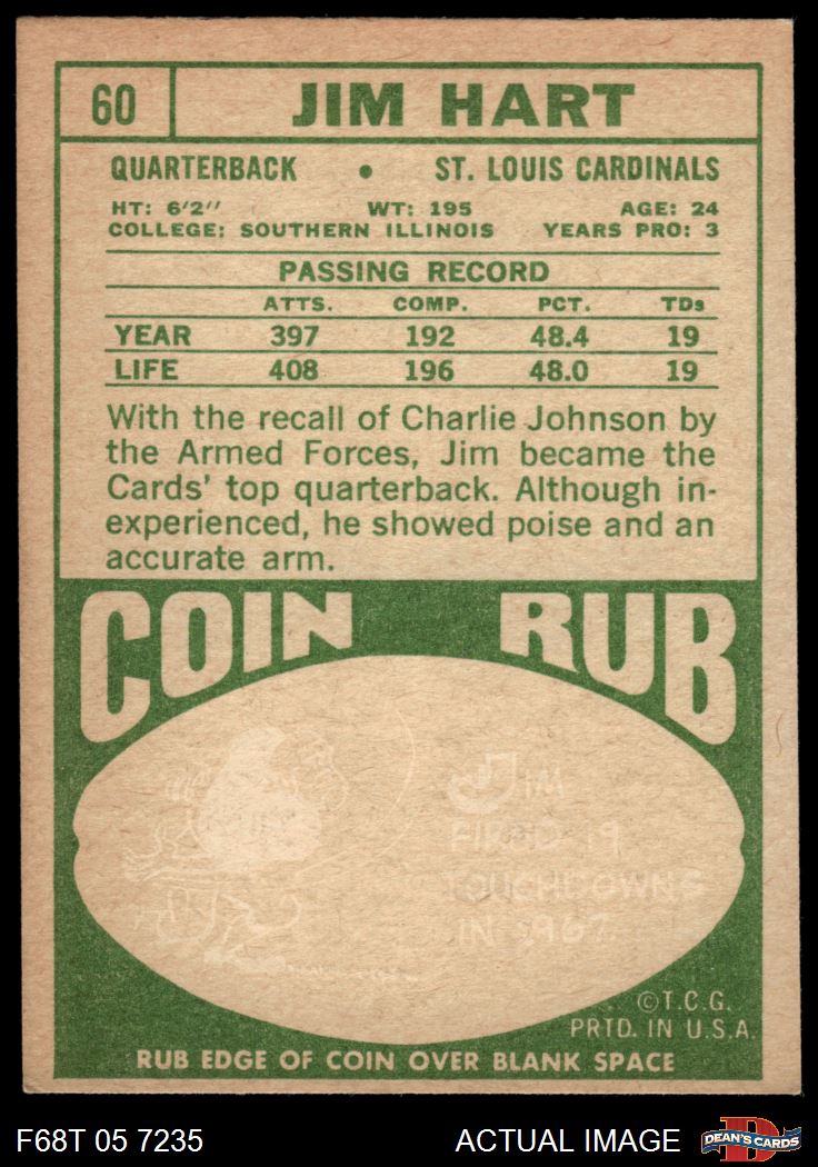 1968 Topps Football Cards (2,556 available)1968 Topps Cardinals-FB (136 available)